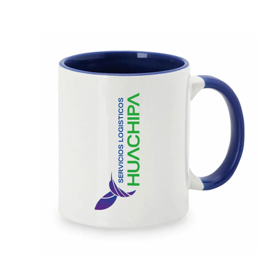 Descripción: Tazas blancas de 11 onzas con interior y asa de color
